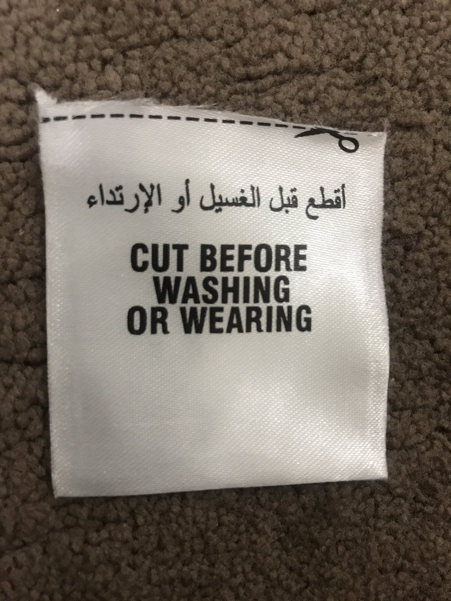 الم ستهل ك و ي ل ل ل م ط ف ف ين No Twitter اقطع قبل الغسيل او الارتداء جملة تنبيهيه على كيس صغير جدا يكون مخيوطا عادة من المصنع مع بعض الملابس الجاهزة وتوصي مصانع