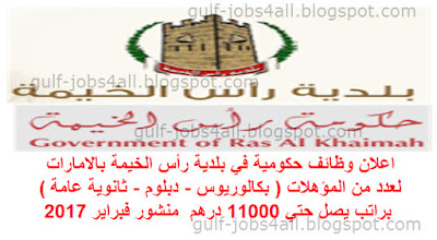 اعلان وظائف حكومية في بلدية رأس الخيمة بالامارات لعدد من المؤهلات بكالوريوس دبلوم ثانوية عامة براتب