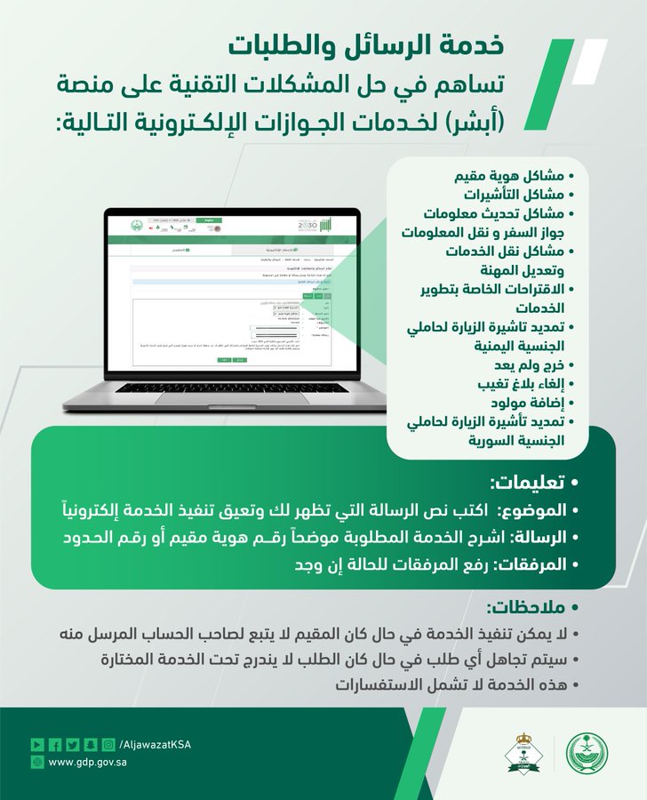 Uzivatel الجوازات ابشر Na Twitteru أخي الكريم يمكنك التواصل معنا عبر خدمة الرسائل و الطلبات من خلال منصة أبشر لنتمكن من خدمتك نسعد بتواصلك
